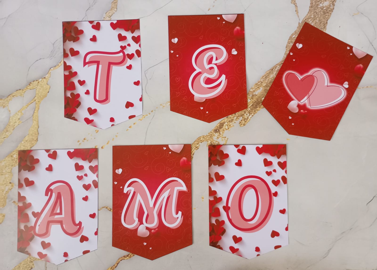 Banderín Te Amo Blanco y Rojo Corazoncitos