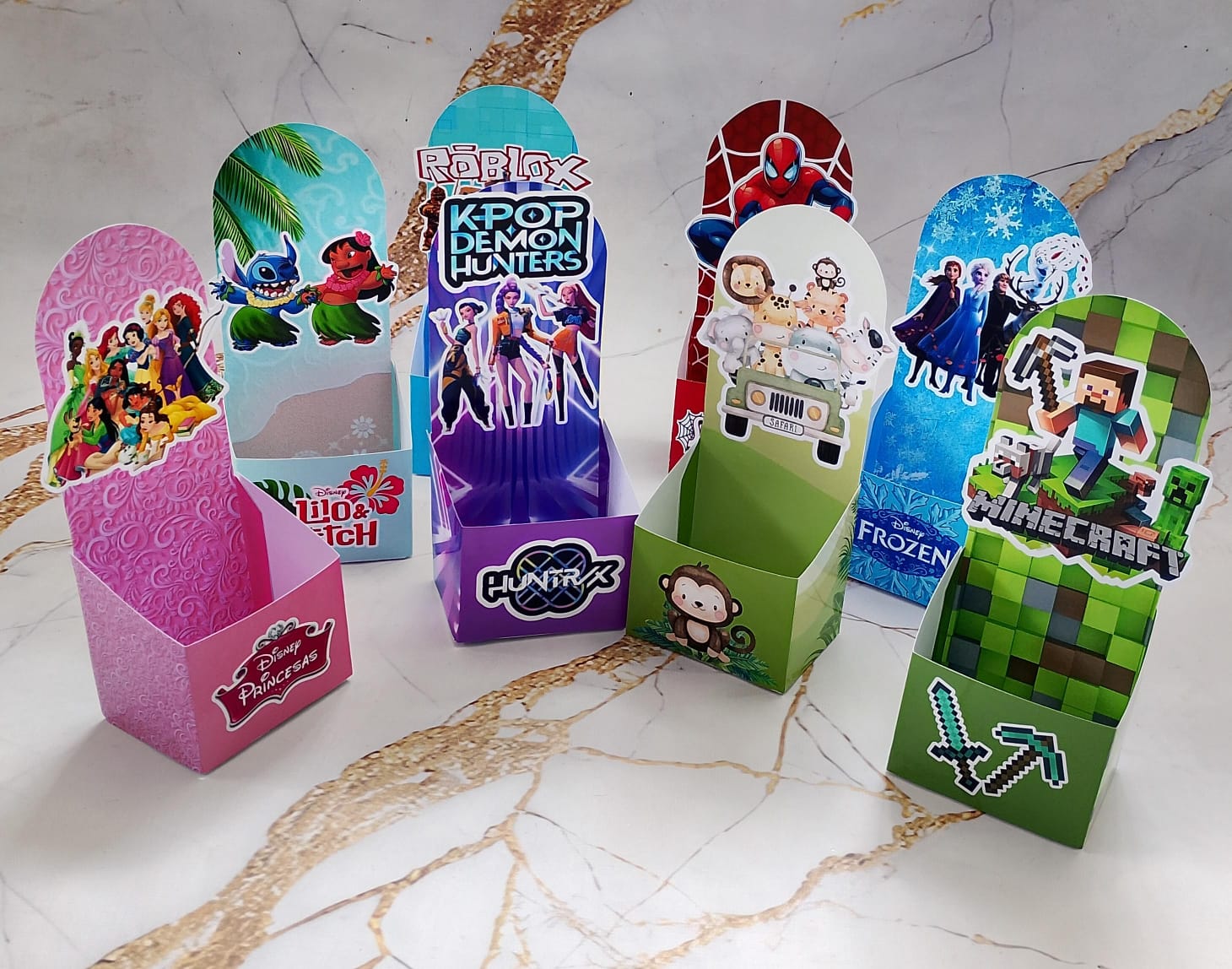 Mickey, Spiderman, Minnie, Cars, Spiderman Animado, Animales de la Selva, Frozen, Minecraft, Las Guerreras K-Pop, Roblox, Princesas, Lilo y Stitch, Independiente Rivadavia, Boca, River, Godoy Cruz, Argentina