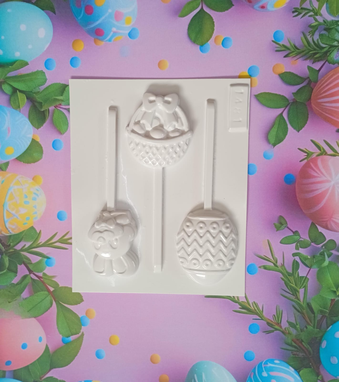 Moldes Plastichok Pascuas Chupetines Conejo, Canasta y Huevo cod.1481 x5u.