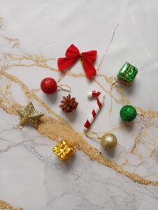 Esferas, moño, caramelo, piña y estrella