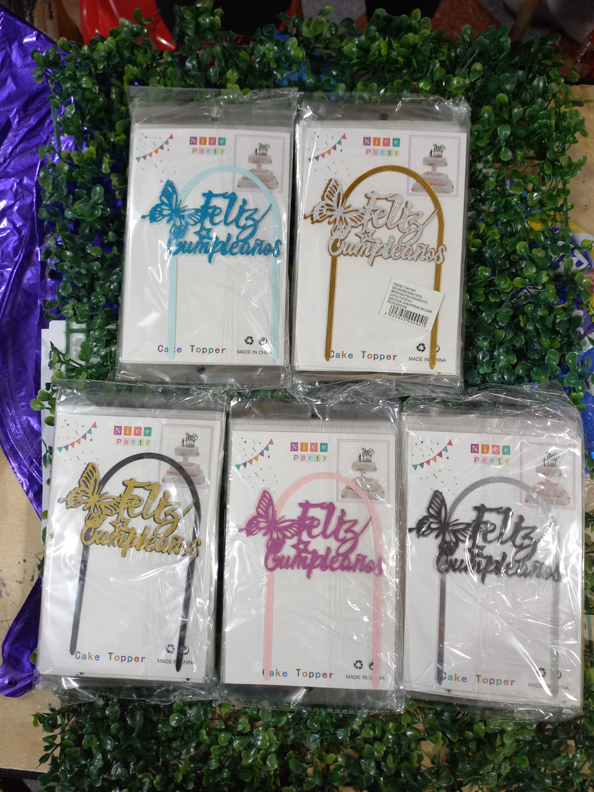 Topper Feliz Cumpleaños Acrílico Arco con Mariposa xU.