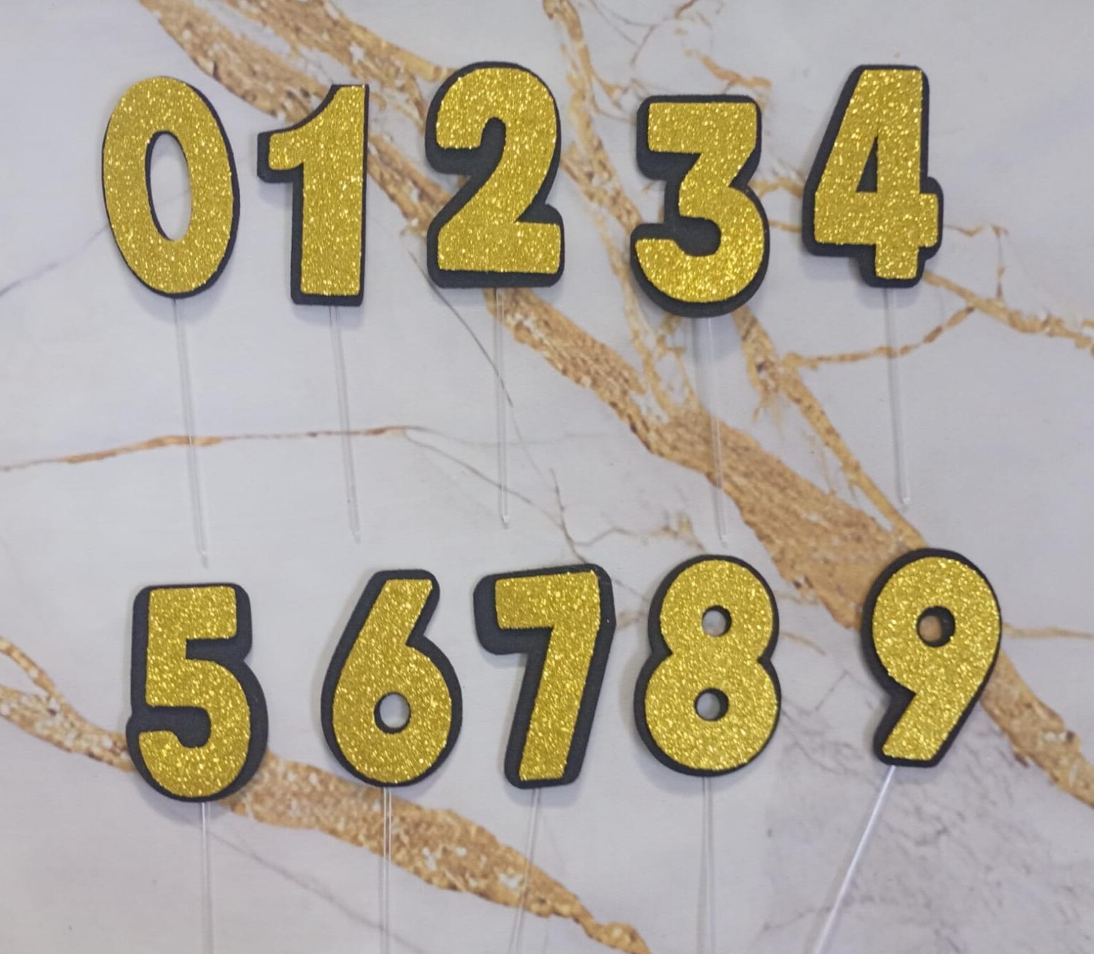 Topper Números Goma Eva Glitter Dorado x5u.